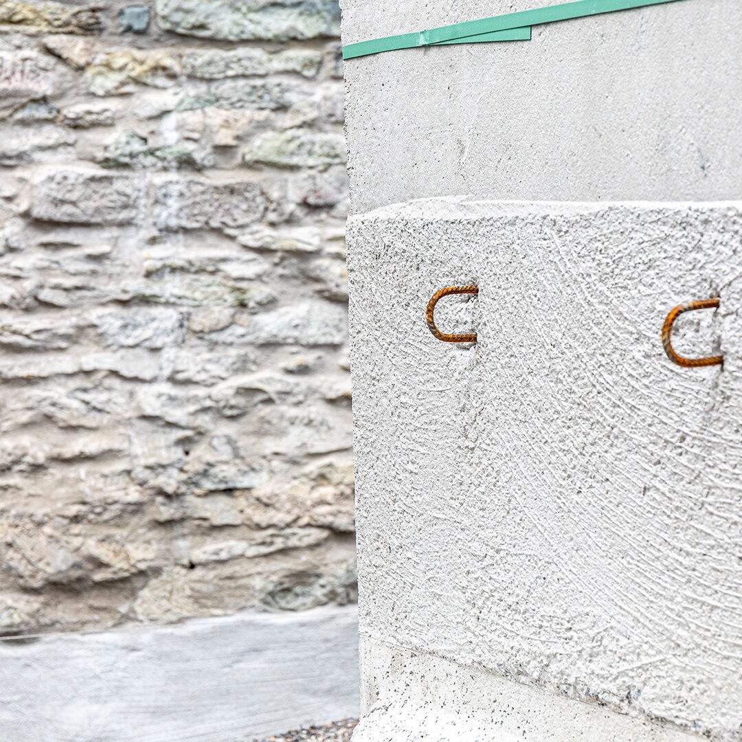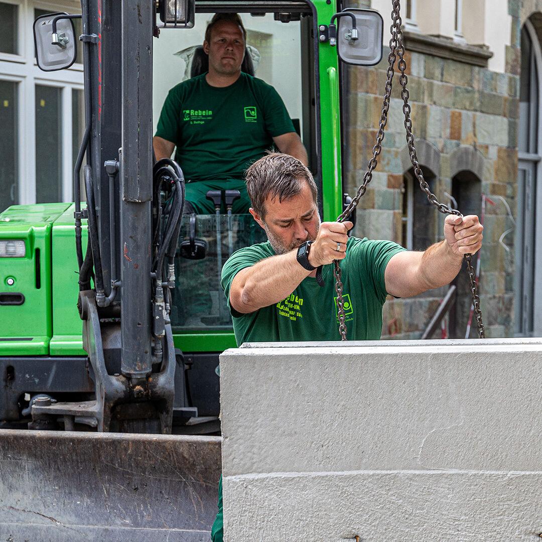 Für ein Wohnhaus wurde eine großzügige Treppenanlage angelegt, die mit einer Geländeabfangung und der Erstellung neuer Stellplätze einhergeht.